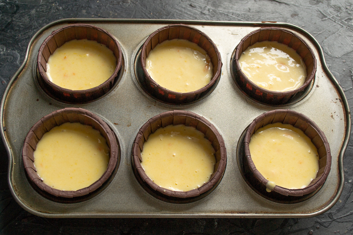 В форму для кексов вставляем бумажные капсулы подходящего размера. Такой способ позволят испечь красивые кексы, которые гарантированно не прилипнут к форме. Даже начинающий домашний кондитер застрахован от неудачи. Чтобы все кексы получились одинаковыми, нужно взвесить всё тесто, разделить на 6 или 8, взвесить каждую порцию теста в бумажной формочке на кухонных весах.
