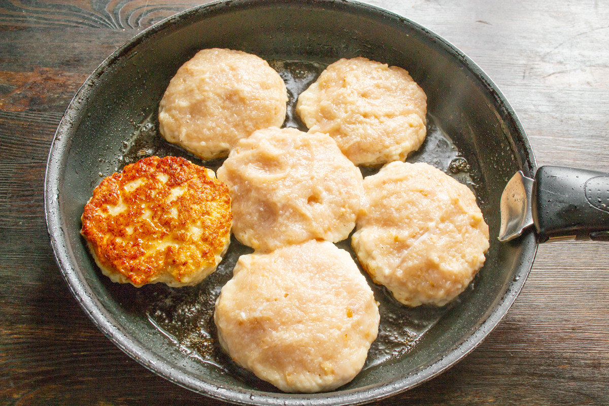 Не стоит сразу накрывать сковороду крышкой, котлеты будут тушиться, из них уйдет влага.