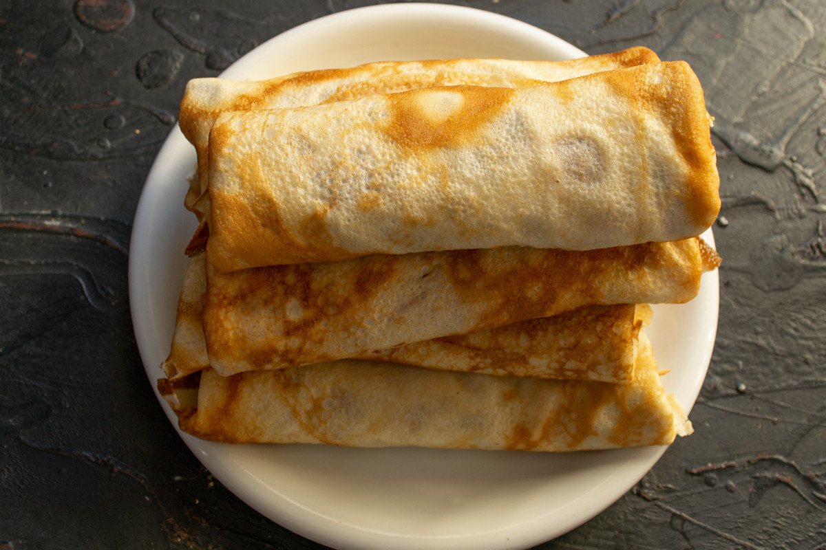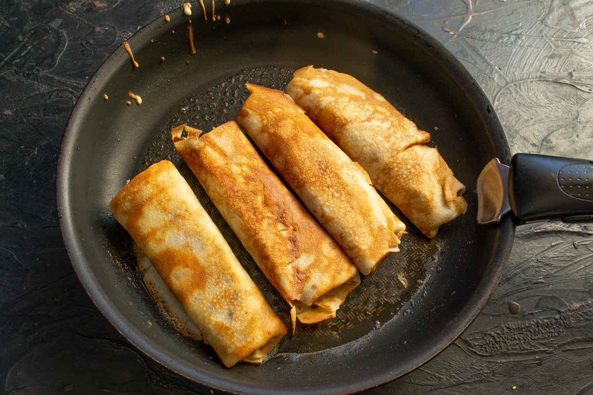 Таким образом жарим остальные налистники, наполняем начинкой, сворачиваем. Из указанных в рецепте ингредиентов получится 9-11 штук в зависимости от размера сковороды.