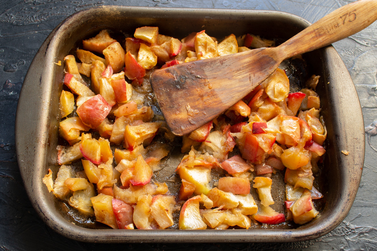 Разогреваем духовку до 200 градусов Цельсия. Ставим яблоки в разогретую духовку, запекаем 25-30 минут, одни раз можно перемешать, если пропекаются неравномерно.