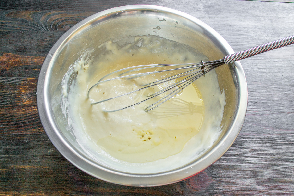 Смешиваем тесто, добавляем рапсовое масло и ещё раз все хорошо перемешиваем. Готовому тесту даем отдохнуть 10 минут. Вы можете использовать любое рафинированное растительное масло в этом рецепте.