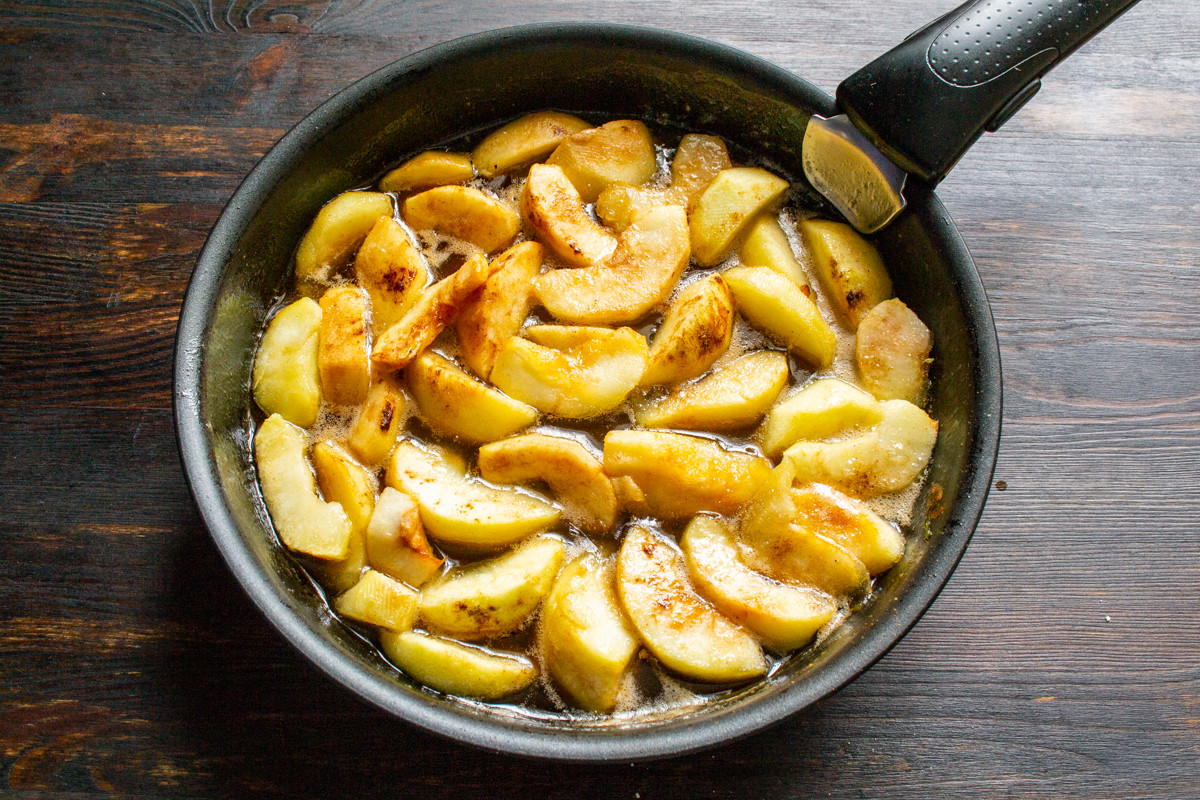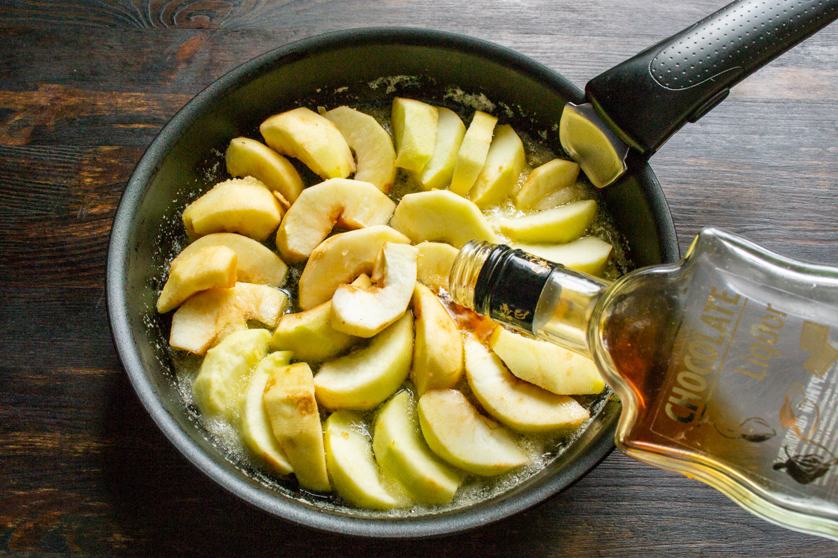 Способ приготовления перевернутого пирога с яблоками и шоколадным ликером