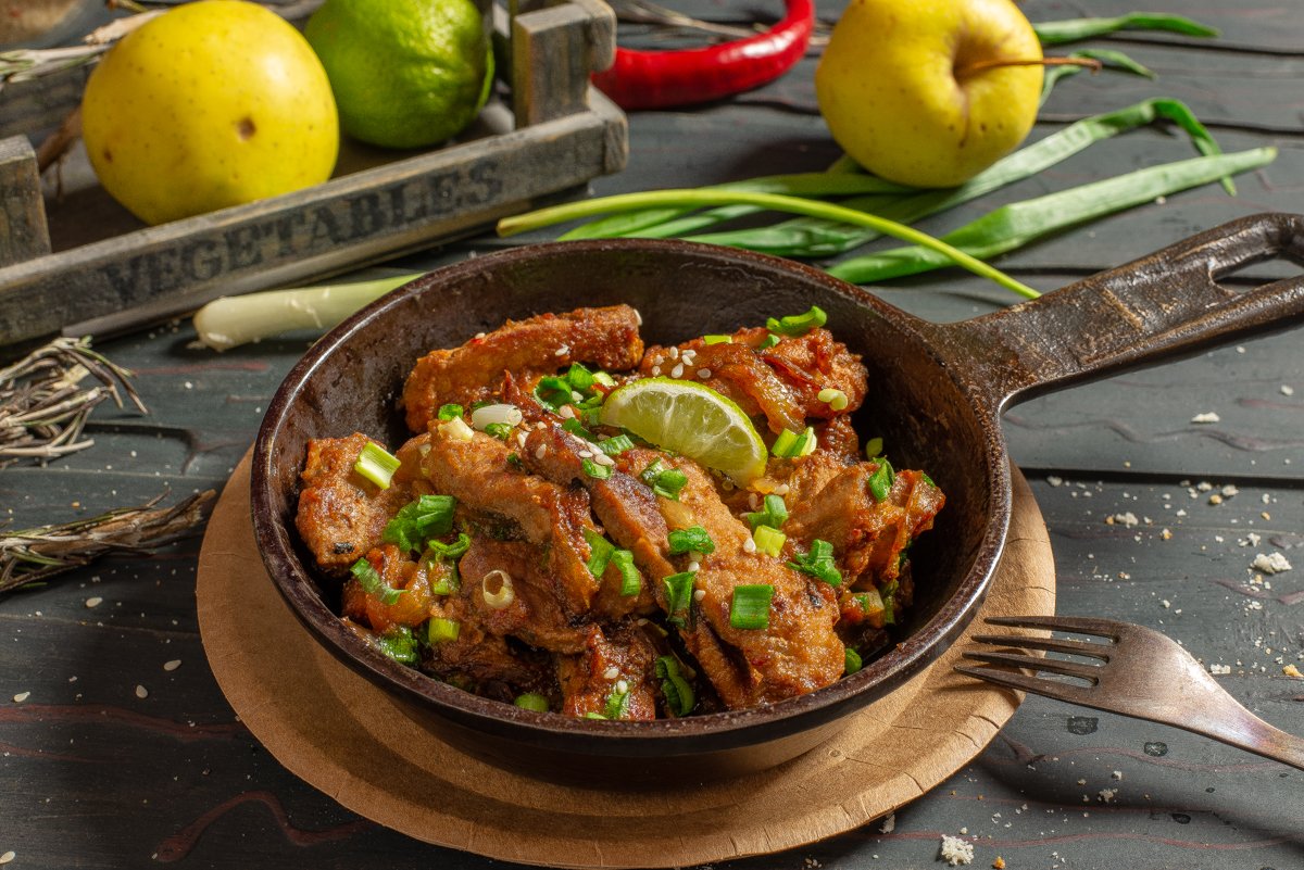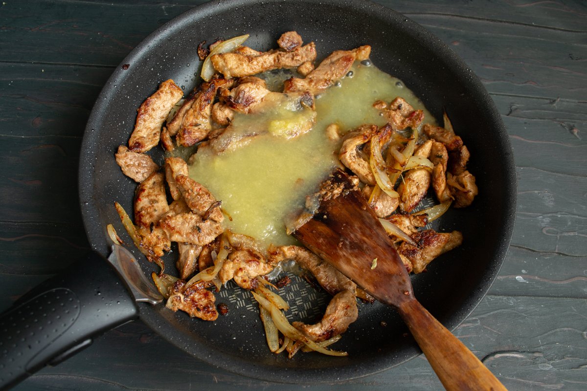 Способ приготовления пикантной свинины с яблоками на сковороде