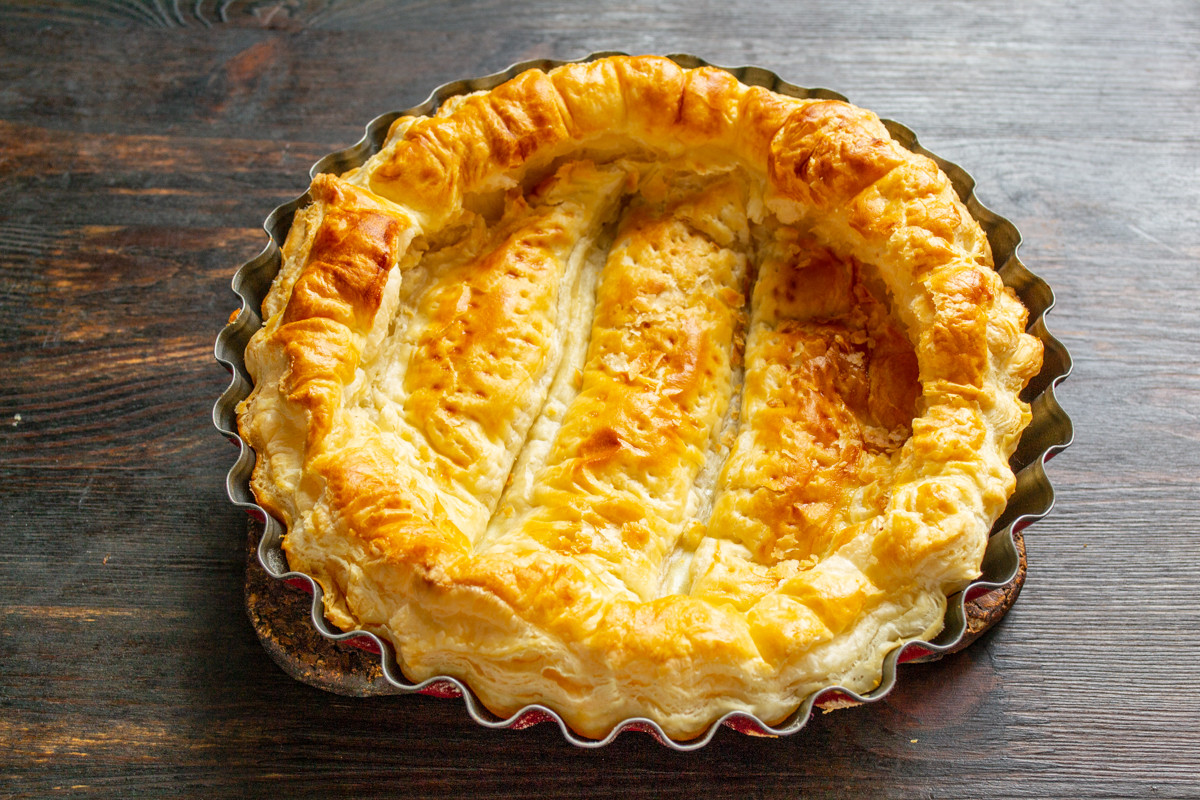 - 200 г слоеного бездрожжевого теста;