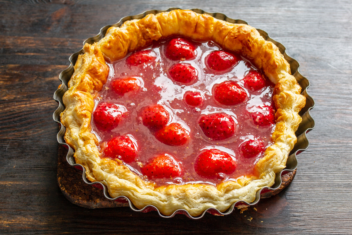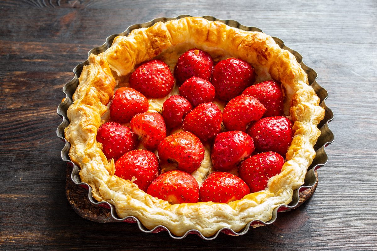 Способ приготовления пирога из слоеного теста с клубникой