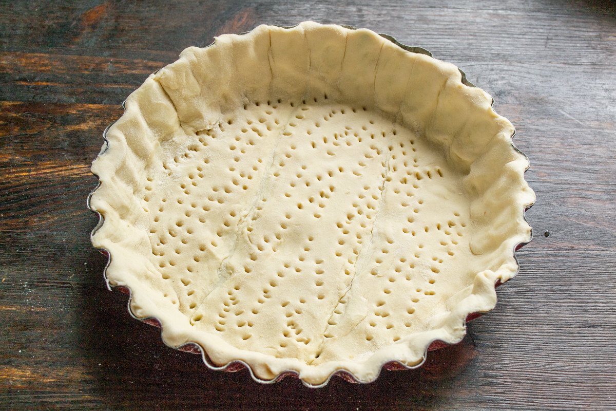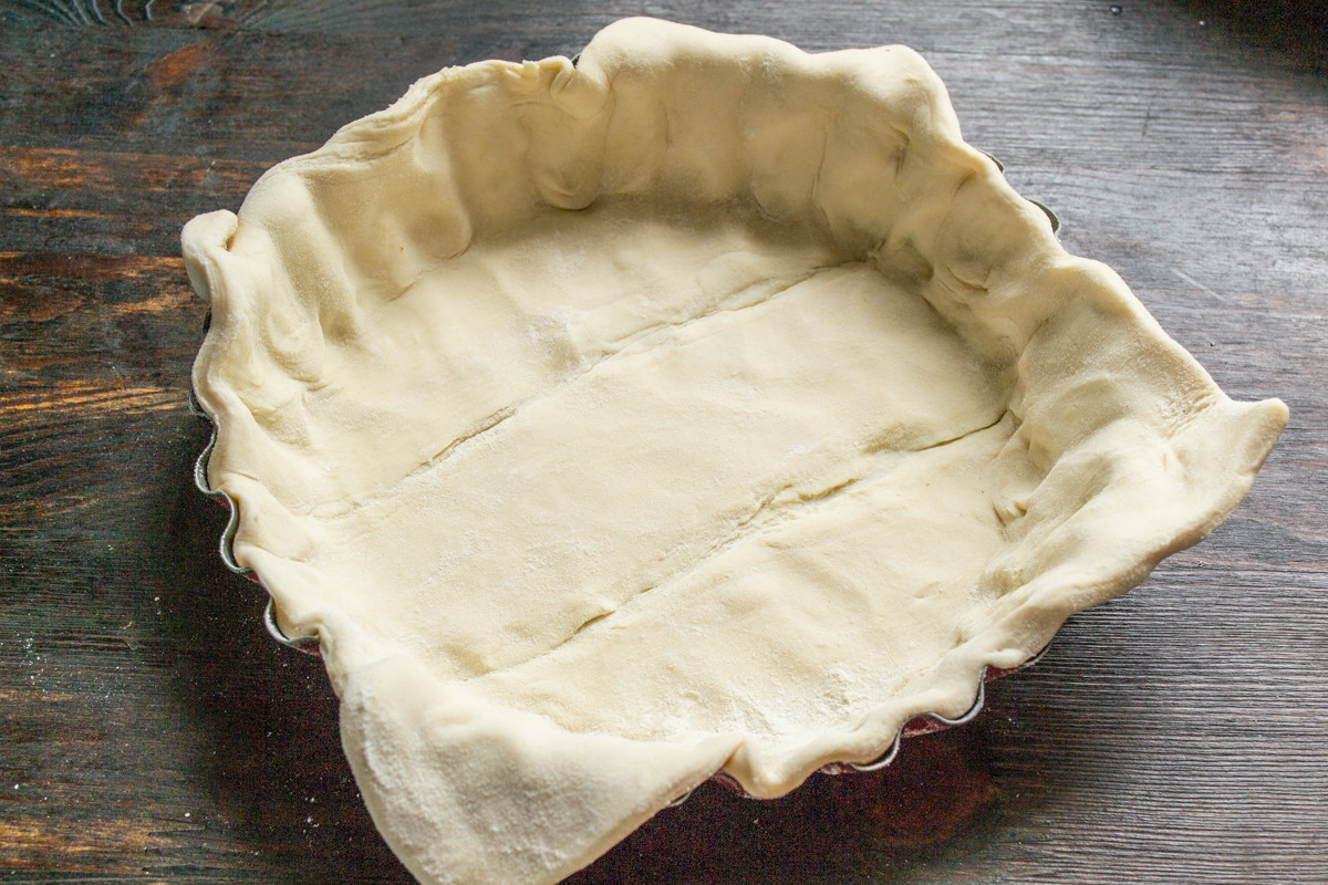 Раскаляем духовой шкаф до температуры 210 градусов по Цельсию. Выпекаем основу пирога 20-22 минуты до золотистого цвета. Тесто в духовке распушится и поднимется. Когда достанете форму из духовки, просто примните серединку рукой.