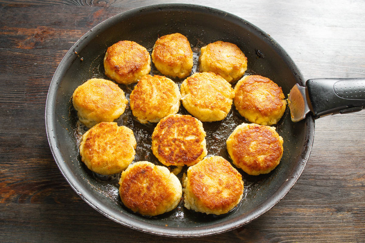 Обжариваем биточки с двух сторон до золотистого цвета примерно по 4 минуты с каждой стороны. Жарить нужно на среднем огне, чтобы масло не дымило!