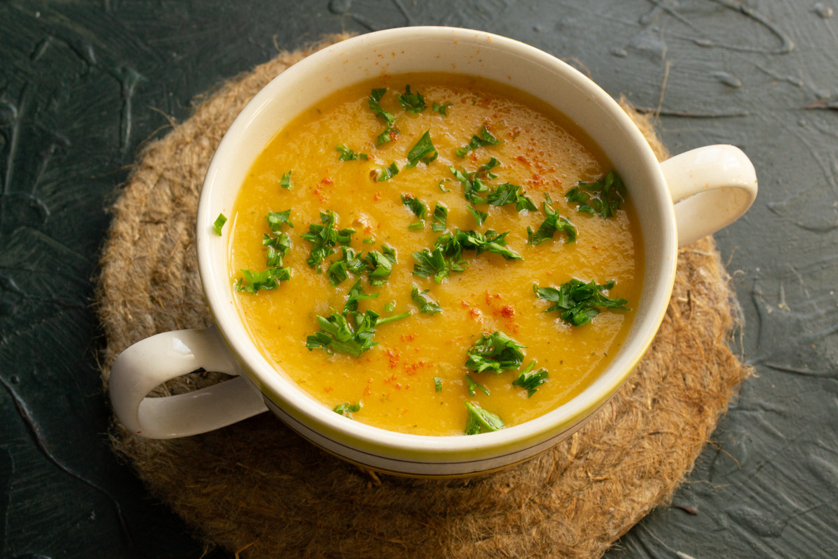 Разливаем рыбный суп-пюре по тарелкам, посыпаем мелко нарезанной петрушкой и молотой сладкой паприкой. Подаём на стол с поджаренными тостами или гренками.