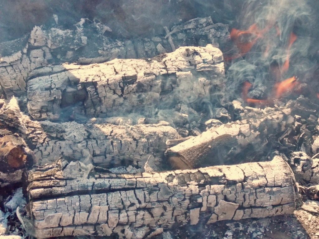 Пока мясо маринуется, разводим костёр, чтобы угли успели прогореть.