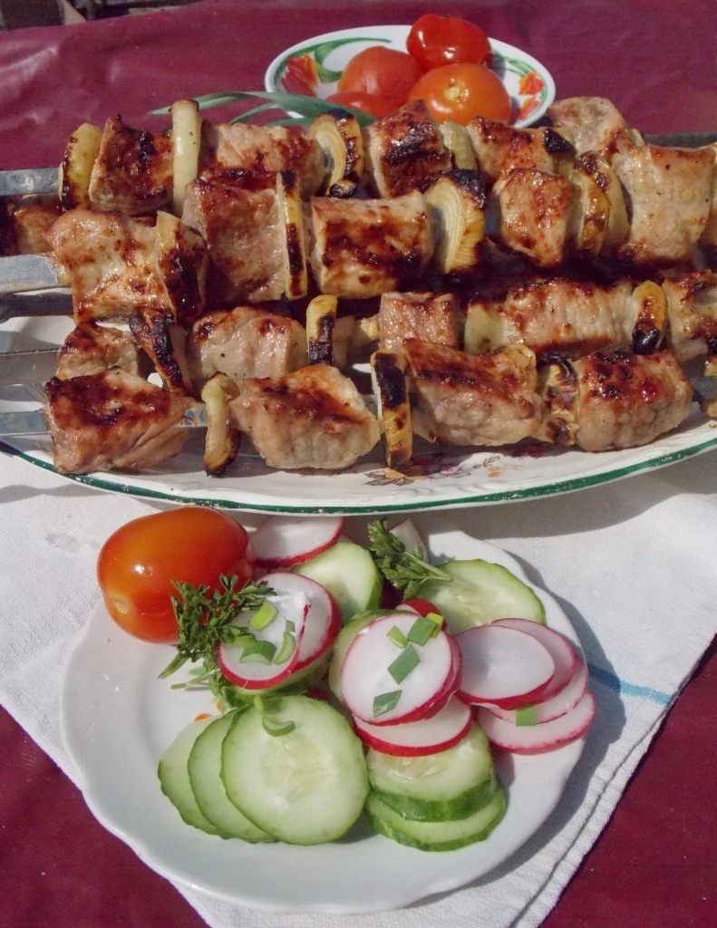 Иногда для маринада используют и более экзотические ингредиенты: для шашлыка по-гречески — гранатовый сок; по-китайски – соевый соус в сочетании с имбирем, мёдом, сухим вином, чесноком и перцем. Кое-кто маринует мясо в квасе, пиве или виноградном соке. Что выбрать из этого разнообразия, решайте согласно своему вкусу.