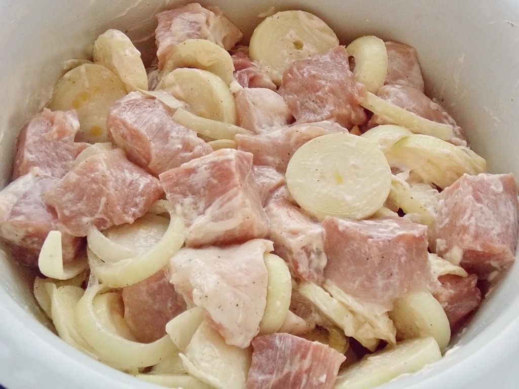 Добавим немного майонеза, тщательно перемешаем и оставим шашлык минимум на 2 часа при комнатной температуре (можно и на ночь).