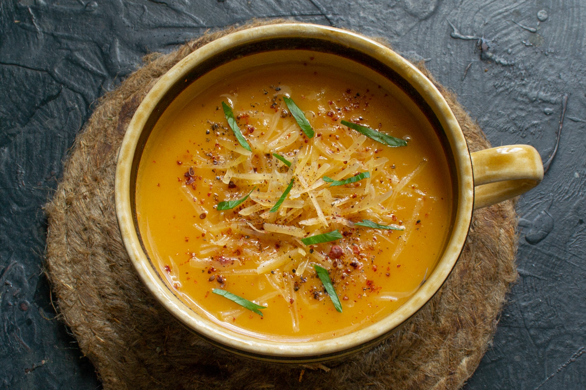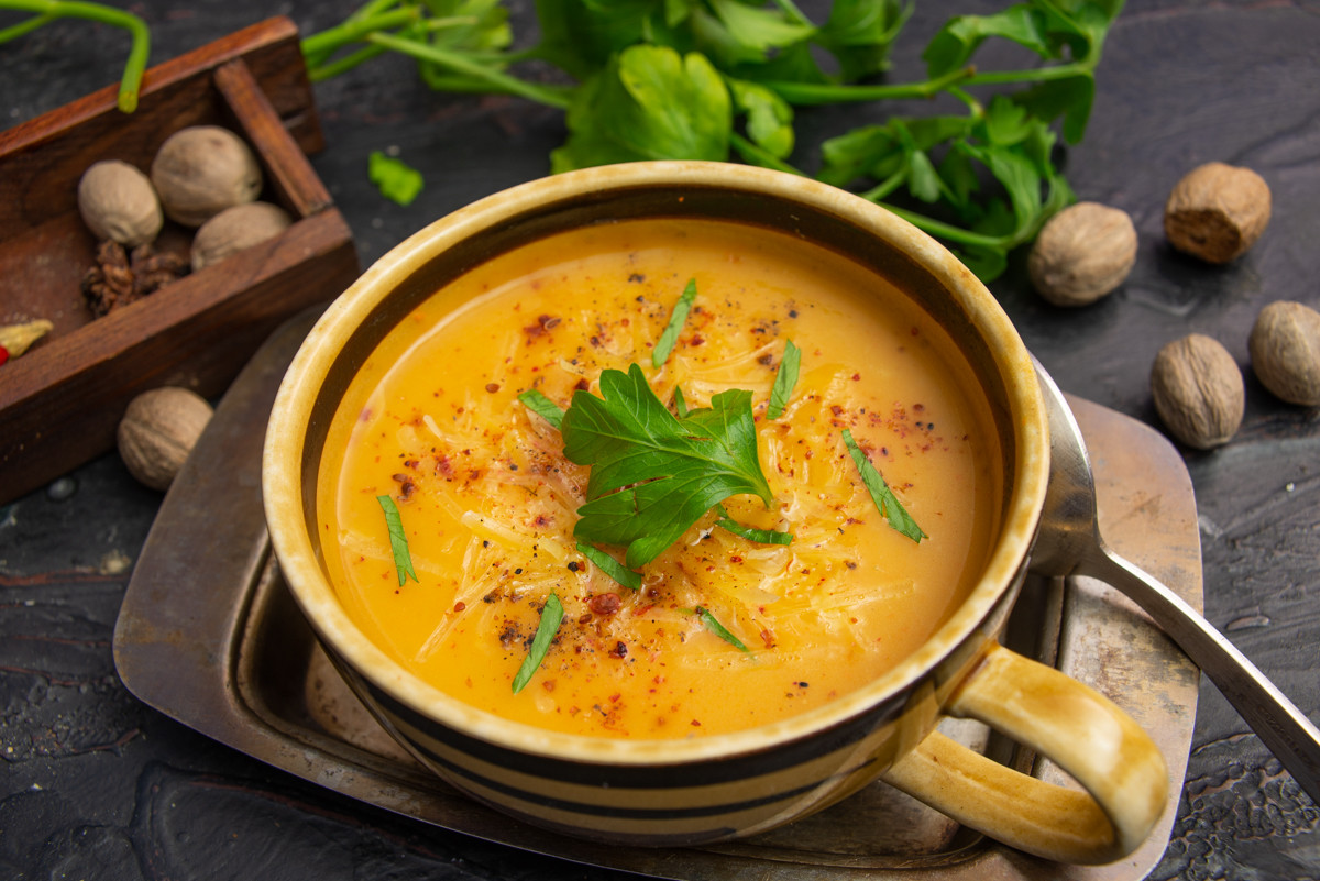Батат – родственник вьюнков, известен в наших широтах под название «сладкий картофель», хотя к картошке имеет самое отдаленное отношение. Рецептов с бататом множество. Благодаря сладости его добавляют и в основные блюда, и в выпечку. К примеру, с бататом получаются очень вкусные кексы. Желтые и оранжевые сорта батата богаты провитамином витамина А (бета-каротин), поэтому красивый цвет супчика радует глаза в прямом и переносном смысле. Готовьте дома полезную еду и будьте здоровы!