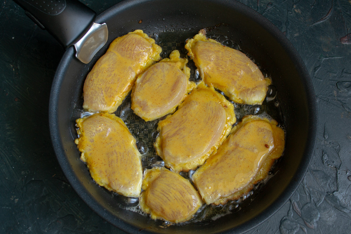 Способ приготовления сочной куриной грудки в кляре на сковороде