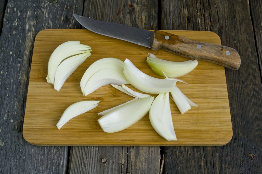 Итак, режем крупно репчатый лук, кладём в блендер.