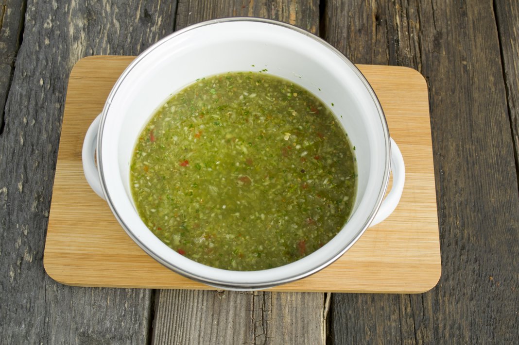 Добавляем кетчуп или томатный соус. Я готовлю домашний кетчуп с болгарским перцем: даже небольшая его ложка разнообразит аромат и вкус маринада.