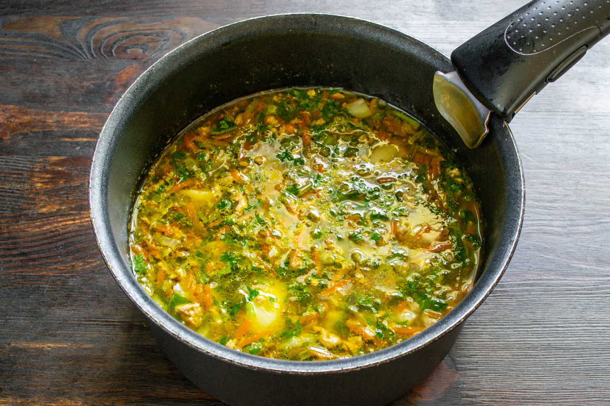 Снимаем готовый суп с огня, даем отдохнуть 5 минут.