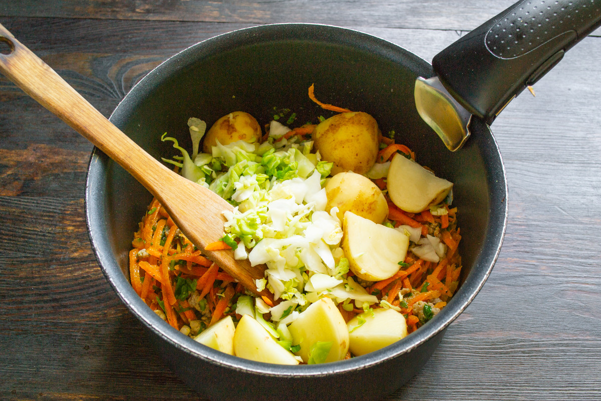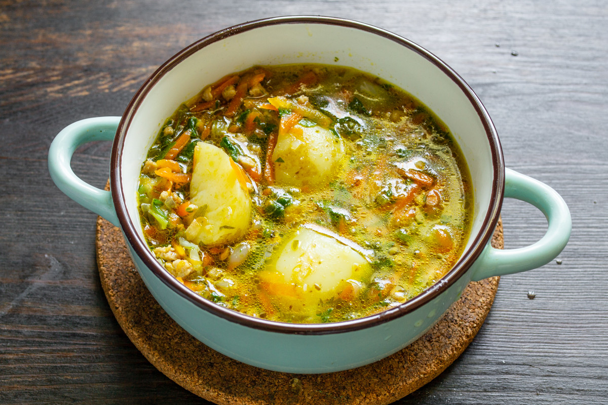 Способ приготовления супа из фарша и картофеля