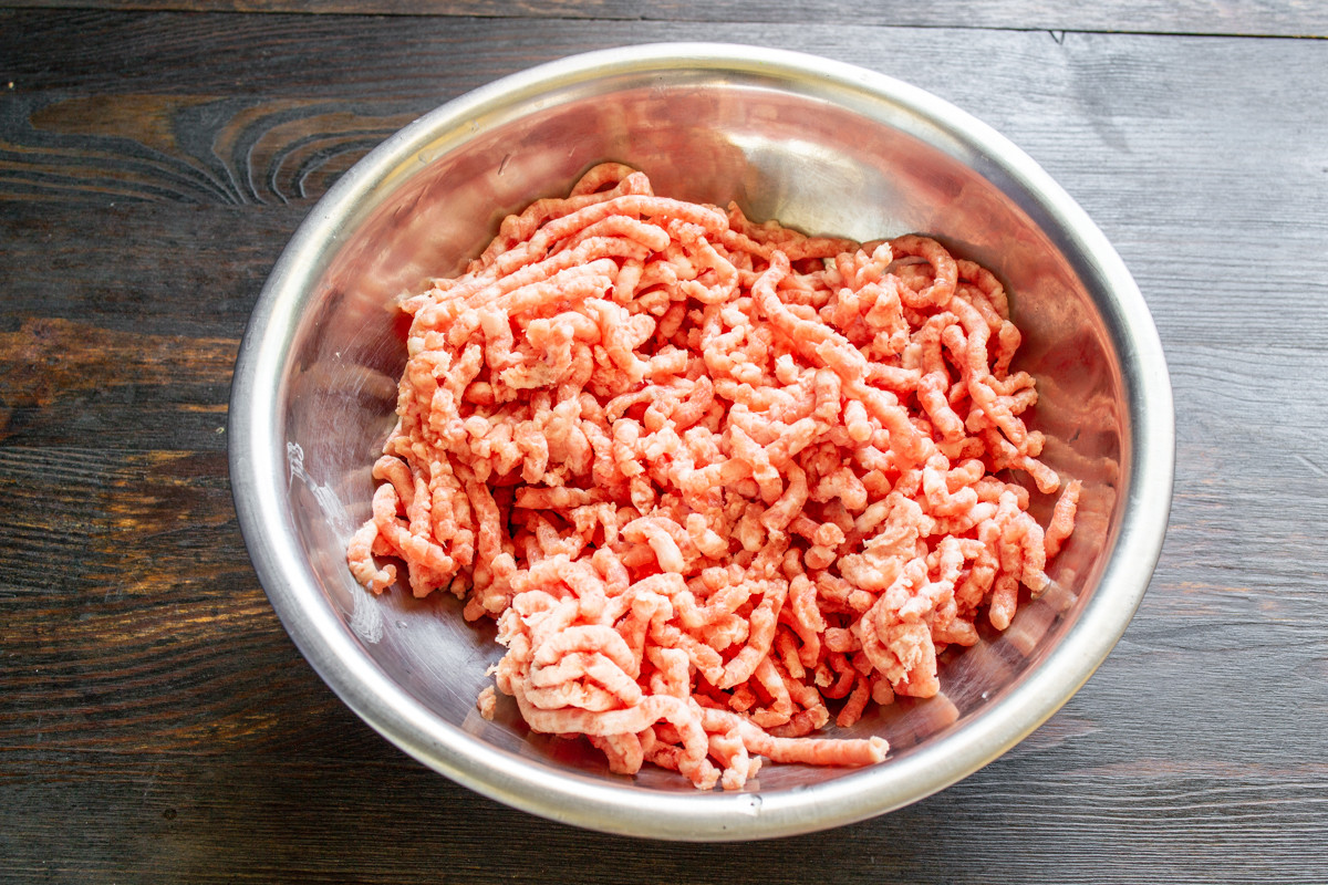 Используйте готовый нежирный фарш или быстро пропустите кусочек нежирной свинины через мясорубку с мелкой решеткой.