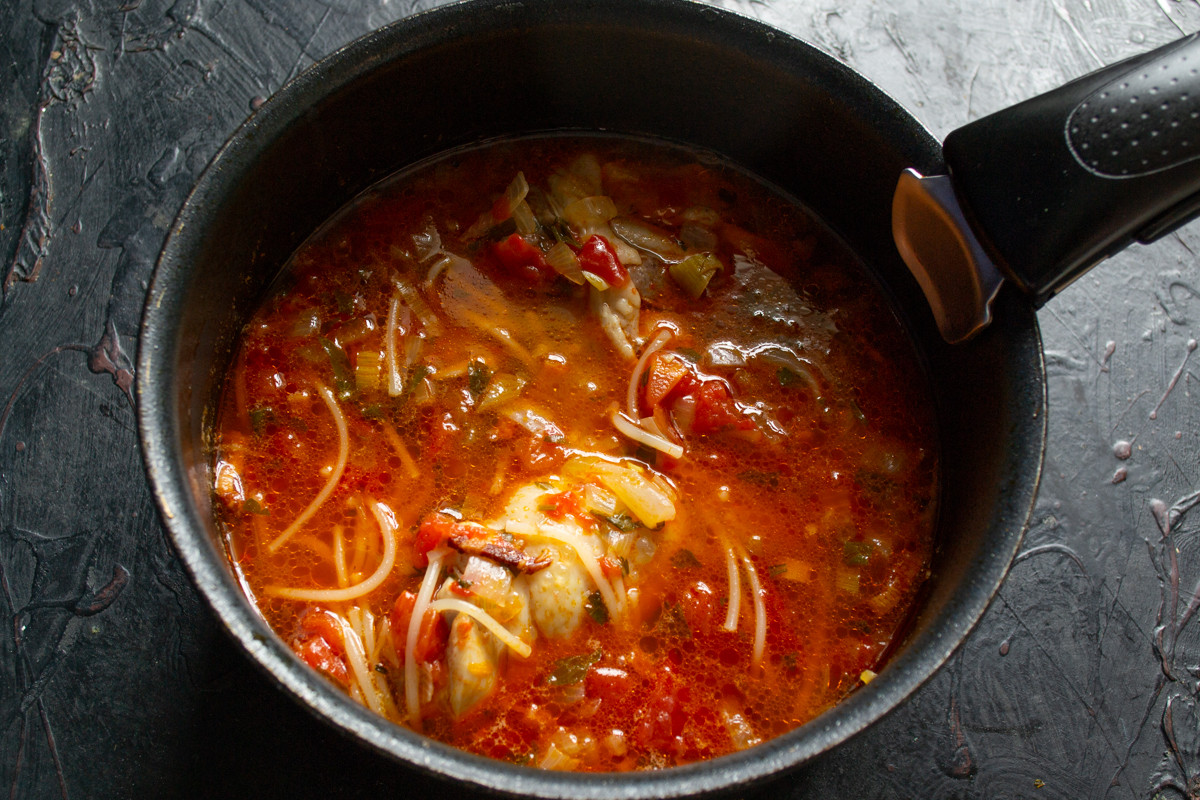 Способ приготовления томатного супа с курицей и вермишелью