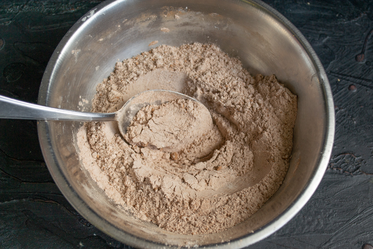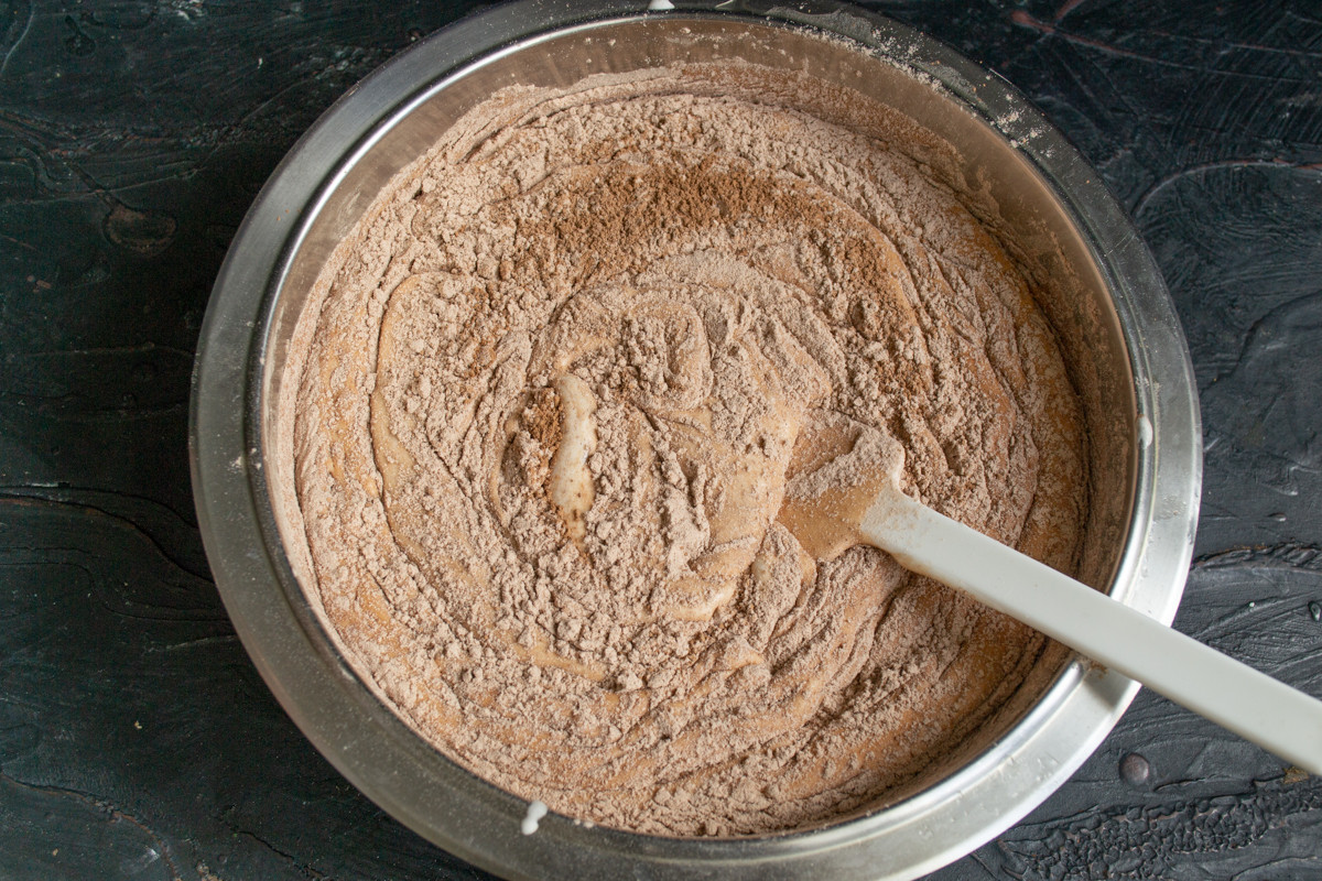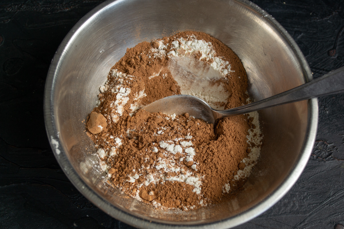 Тщательно перемешиваем муку с какао, просеиваем смесь сквозь мелкое сито – избавляемся от комков и насыщаем воздухом.