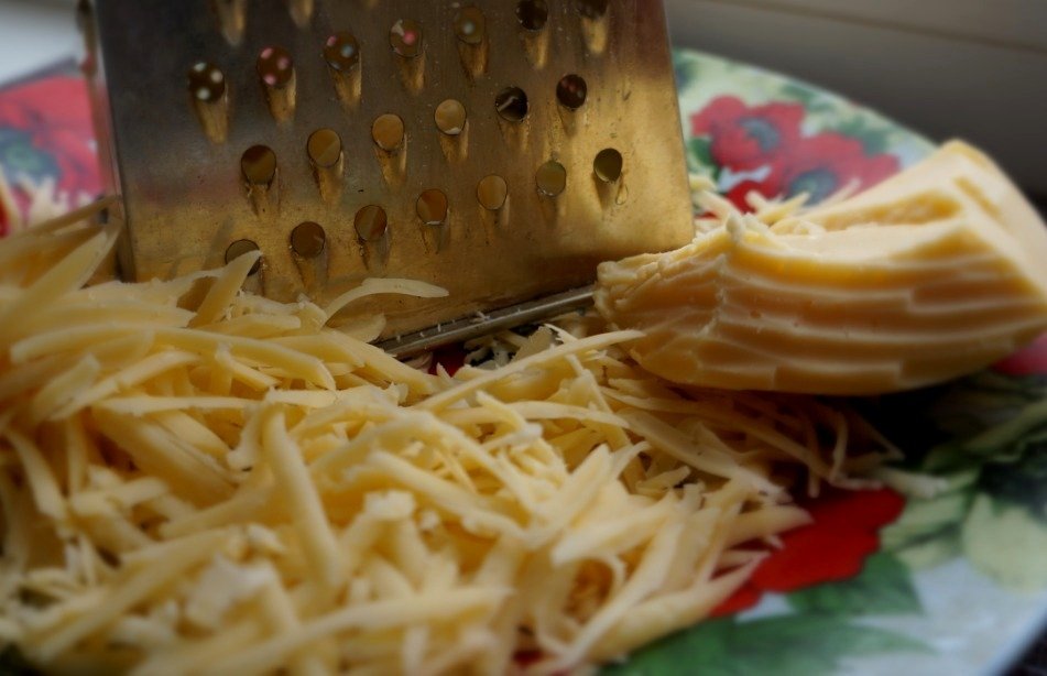Сборку лазаньи заканчиваем слоем тертого сыра, который помещается на самый верхний лист, также смазанный соусом «Бешамель» (для украшения блюда можно также капнуть немного кетчупа).