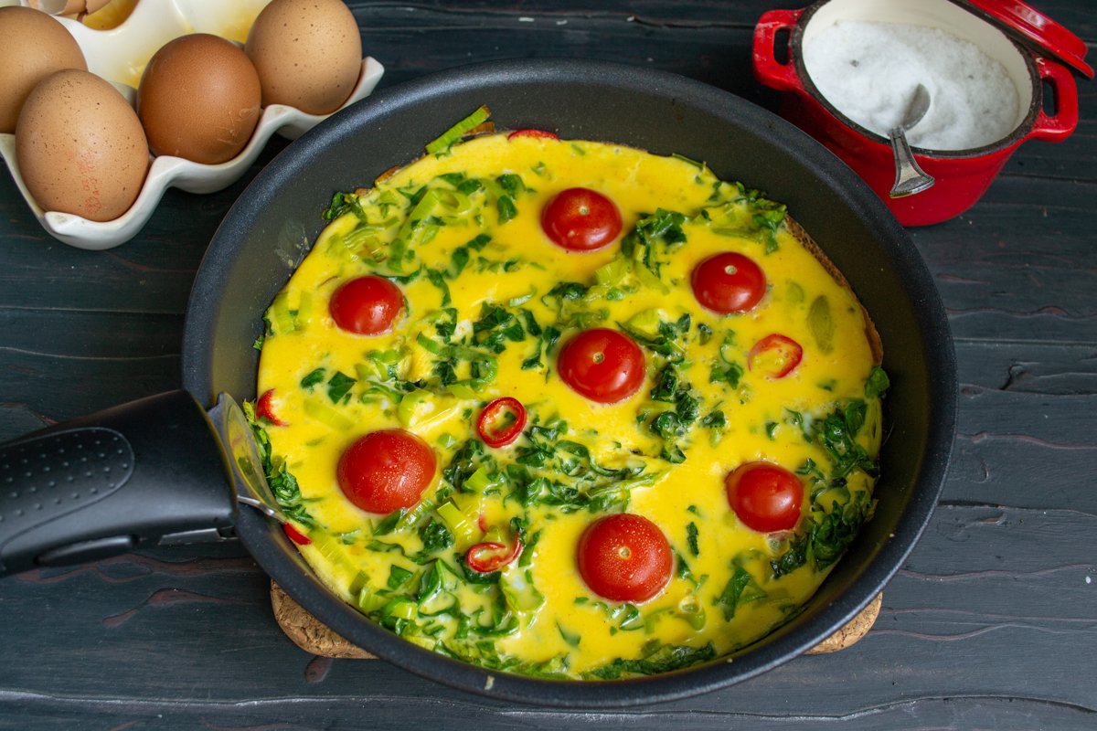 Ингредиенты для омлета со шпинатом и помидорами
