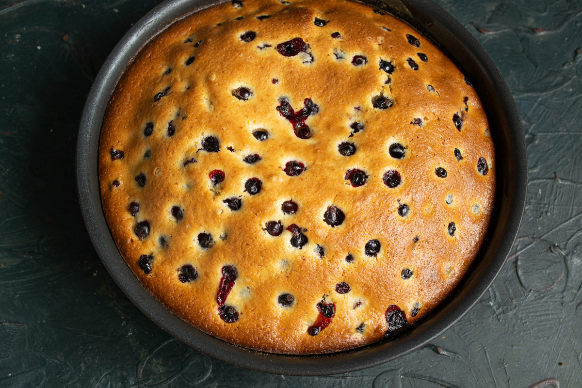 Способ приготовления воздушного пирога с черной смородиной на молоке