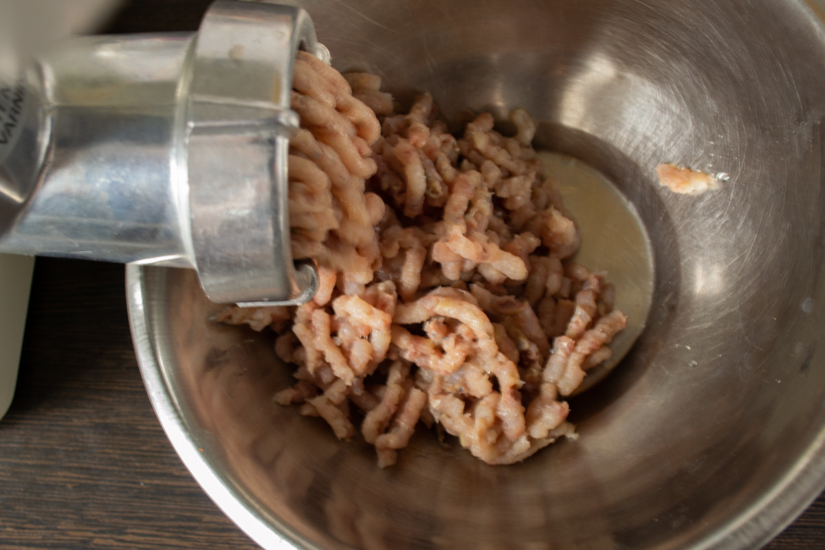 Очищенное от костей филе сельди пропускаем через мясорубку (насадка с мелкими отверстиями). Если нет мясорубки, то порубите филе мясным топориком или широким ножом на разделочной доске.