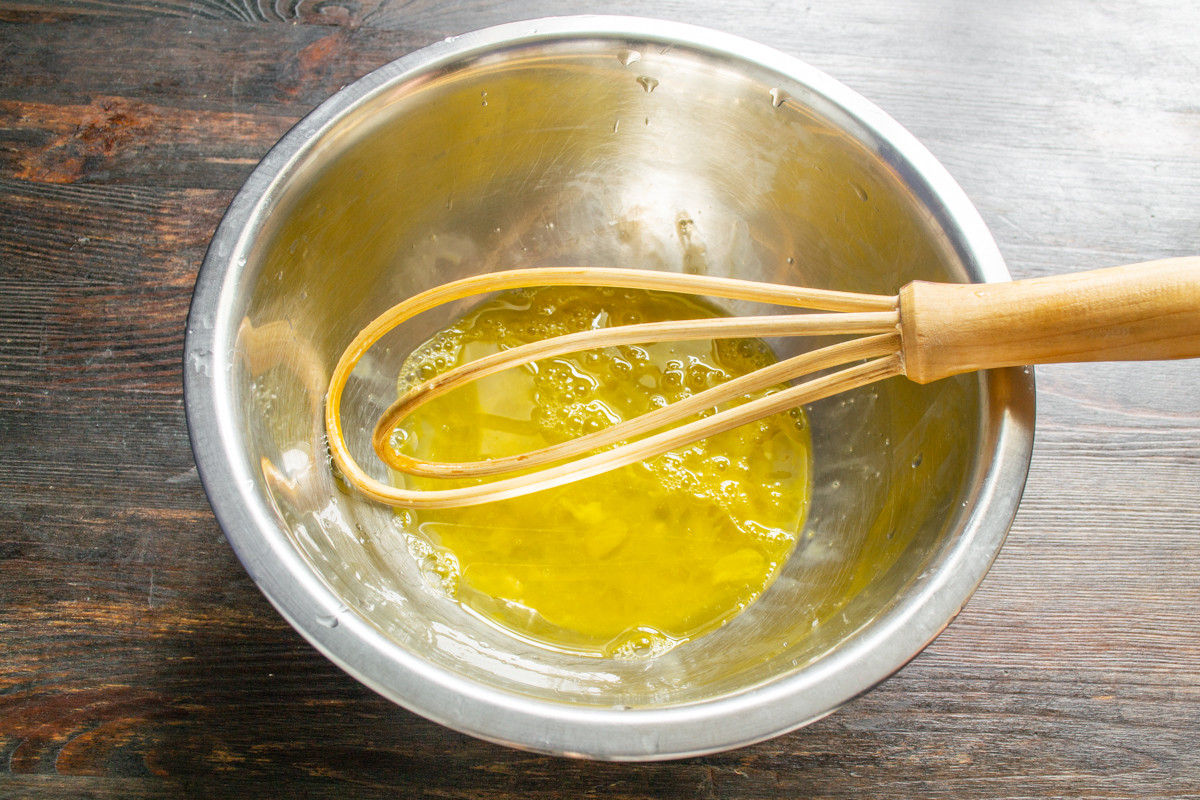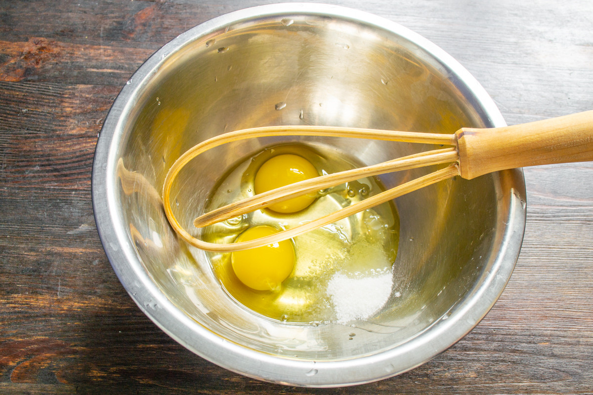 Взбиваем яйца венчиком 1-2 минуты. В пену взбивать не нужно, только разрушить структуру.