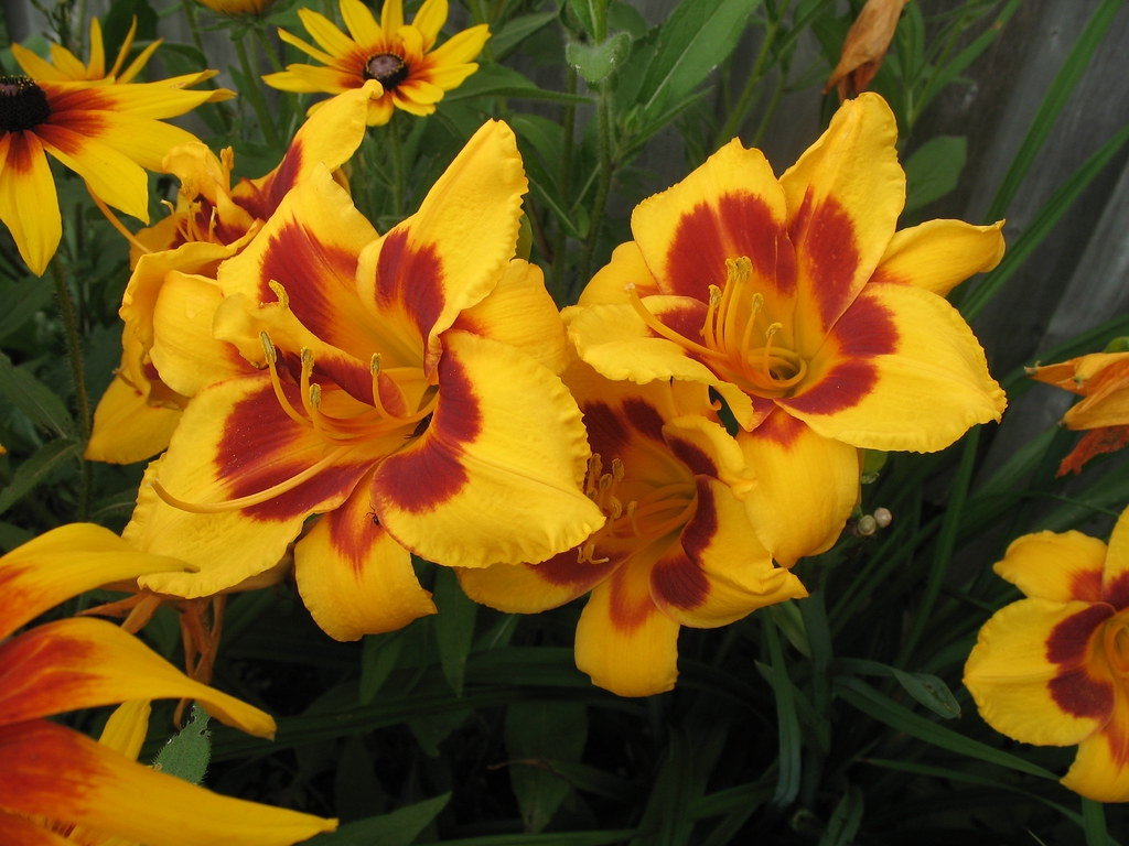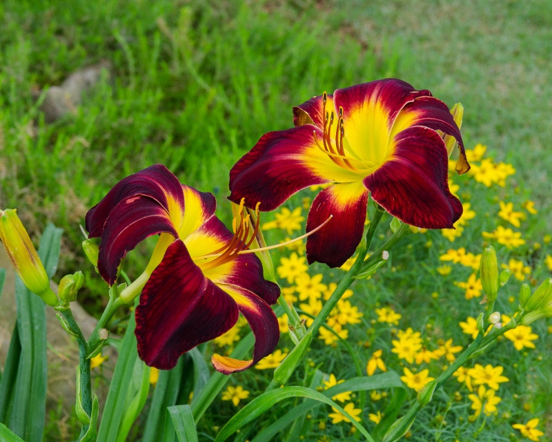 Лилейник «Персиан Руби» (Hemerocallis ‘Persian Ruby’). Глубокие пурпурно-красные, ложкообразные больщие бутоны — почти 20 сантиметров в диаметре. Большое горлышко с зелёным отливом приятно контрастирует с темными лепестками. «Персиан Руби» или «Персидский рубин» особо привлекателен в середине лета, когда он взрывается большим количеством бутонов. Характерный двухцветный эффект листьев просто светится в тени. Этот сорт также оказался более устойчивым к заболеваниям листьев, чем другие сорта.