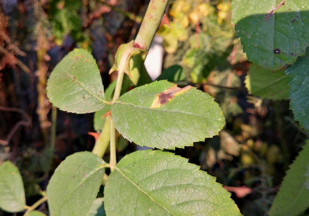 Возбудители — гриб Phyllosticta rosae Desm. и гриб Phyllosticta rosarum Pass.