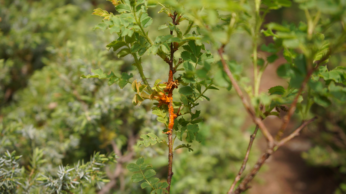 Возбудитель — гриб Phragmidium disciflorum (Tode) James.