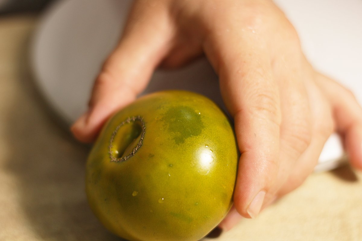 На зеленых томатах в области цветочного рубца появляются сначала беловатые, позже буреющие пятна. Постепенно развивается некроз ткани в виде черно-бурого вдавленного пятна. Помидоры теряют товарные качества. При повышенной влажности сгнивают.
