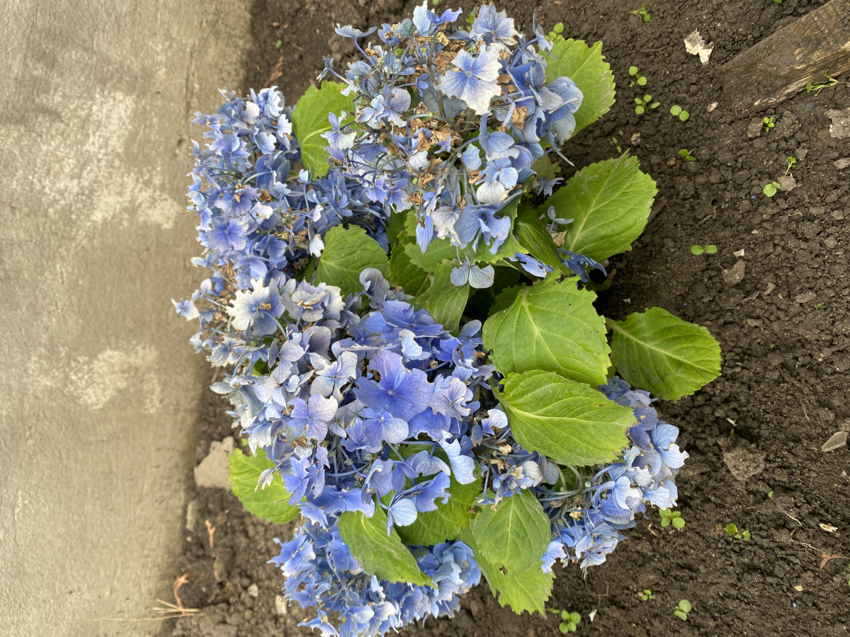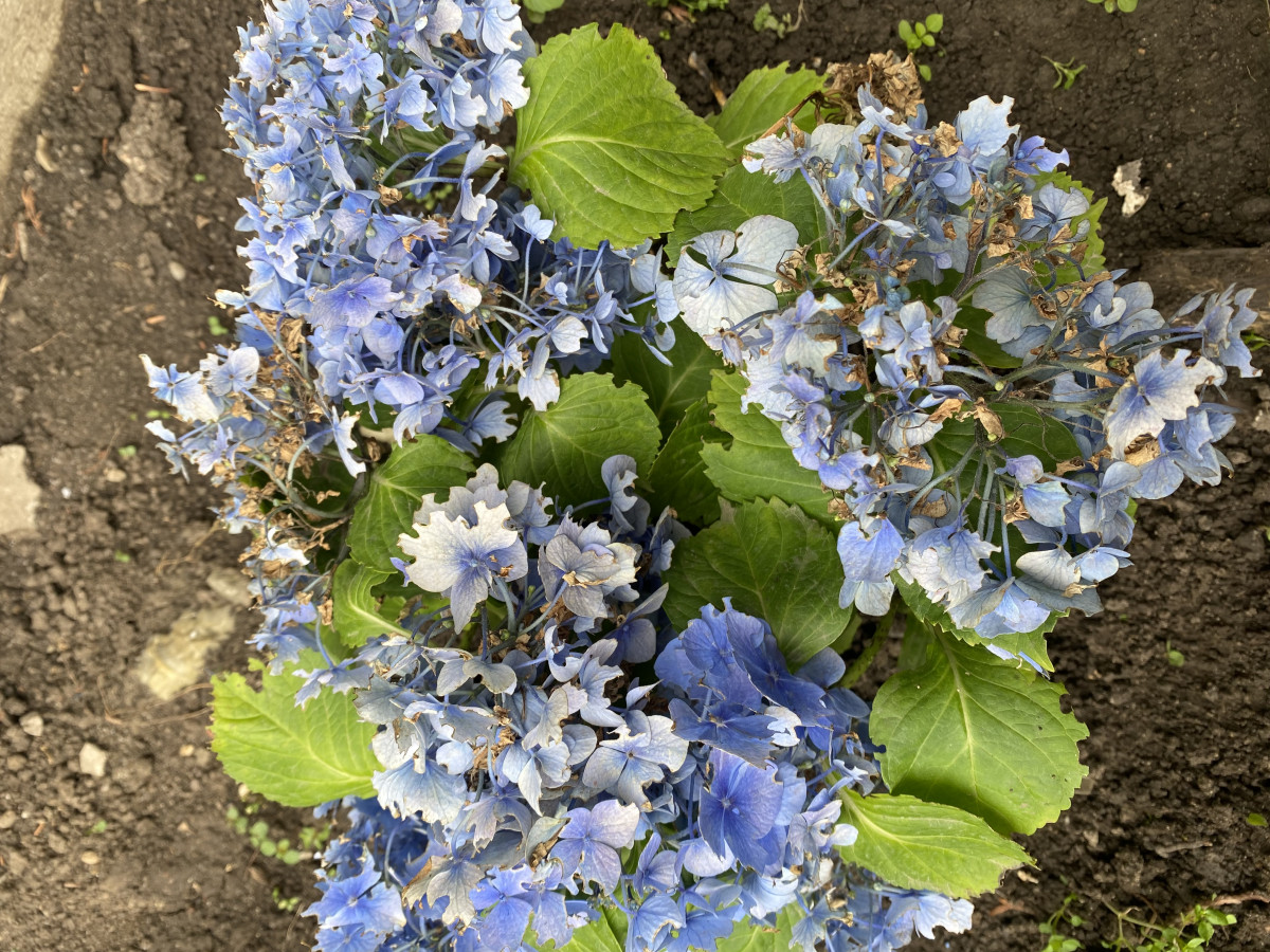 На третьем фото — одна из самых сложных гортензий — крупнолистная. Любит кислый грунт. И рыхлый. В посадочной яме тоже нужно улучшить почву и регулярно подкислять грунт.