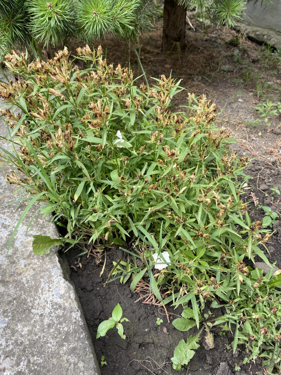 Добрый день! На первом фото не вижу что за растение, возможно отцвело, возможно серая гниль.