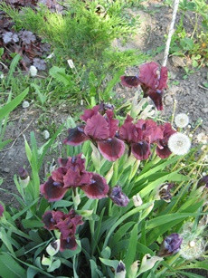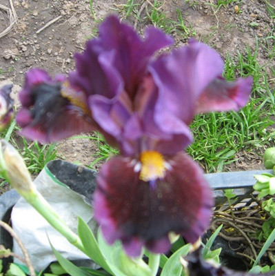 Яркий экземпляр карликовой формы ириса имеет оранжево-жёлтую бородку, в основании с фиолетовым оттенком. Бархатные тёмно-бордовые широкие лепестки пронизаны отчётливо-видными жилками. По краю красуется гофрированная бордово-сиреневая полоса. Верхние лепестки сиренево-розовые с завитушками. Достойный экземпляр для любой клумбы!!!