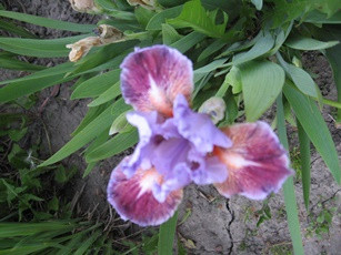 Сложный рисунок на лепестках сразу приковывает к себе внимание. Коричнево-бордовая сеточка в основании с бледно-лиловой бородой на белом фоне, плавно переходит в бордово-сиреневый оттенок по центру лепестка. Легкая волнистая кайма насыщенно-сиреневого тона. Верхние лепестки более светлые. Диаметр бутонов в полном роспуске 12 см. Высота растений 20-30 см. Цветение июнь.