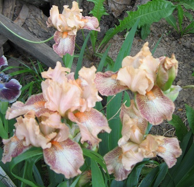 Необыкновенно красивый ирис высотой 30 см абрикосово-розовой расцветки с бородовыми точками, расположенными хаотично по всей поверхности леместков, с однотонной волнистой окаёмкой, красно-коралловыми бородками. Срок цветения средне-ранний.