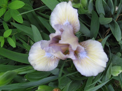 Нежный окрас переливчатых тонов: сливочного, голубого, дымчатого, сиреневого. Широкие фолы со светло-голубой бородкой в центре имеют сиреневую сеточку на бледно-жёлтом фоне, плавно переходящем в волнистый дымчатый край. Верхние лепестки кружевные сиренево-сливочные. Высота стеблей 25-30 см. Цветы распускаются в конце мая – июне.