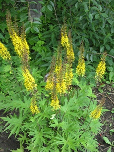 Высота растений достигает 1,2-1,5 м. Сильно рассечённые резные насыщенно зелёные листья крупные располагаются в нижней части куста. Со временем образует поляны. Соцветие колосовидное, состоящее из мелких ярко-жёлтых бутонов, распускающихся постепенно снизу вверх с середины июня до августа. Красивые свечеподобные соцветия являются ярким акцентом на клумбе, напоминают миниатюрных бабочек. До самой осени кустики остаются декоративны за счёт красивой резной листвы.