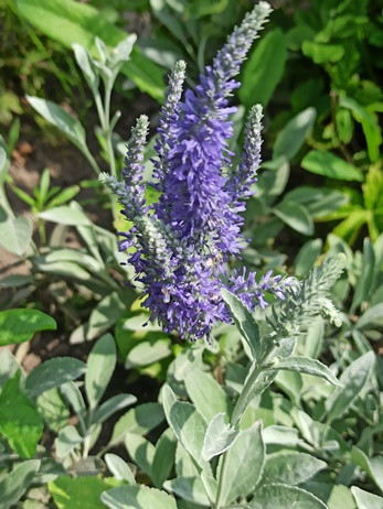 Высота растения 30-40 см. Декоративна весь сезон за счёт серовато-зелёных ланцетовидных листьев с плотным войлочным опушением. Свечеподобные фиолетово-синие цветы, собранные в колоски на концах прямостоячих побегов, добавляют шарм и красоту уникальному растению. Распускаются бутоны в июле, постепенно поднимаясь снизу вверх в течение месяца. Зимует без укрытия.