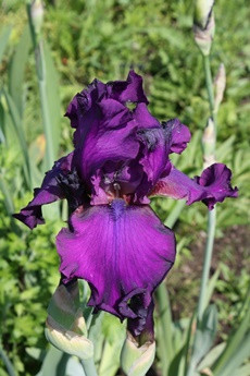 Высокие цветоносы бородатого представителя достигают 90 см, заканчиваются крупными роскошными цветами насыщенно-фиолетового окраса с гофрировкой по краю каждого лепестка. По центру располагается тёмно-синяя бородка. Эффектно смотрится как в одиночных, так и групповых посадках.