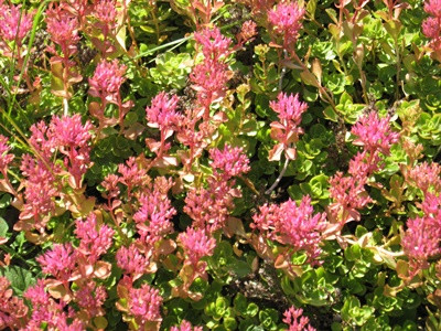 Образует плотные зеленые куртинки с округлыми мясистыми листьями. В июне распускаются ярко-розовые мелкие пушистые соцветия, собранные в кисти. Не боится морозов. Листья на зиму не пропадают.