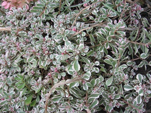 Полностью оправдывает свое название. Оригинальная окраска листа, состоящая из зеленовато-сероватой середины, белого края, розовеющего при прохладной погоде. Наиболее ярко контрастная полоса проявляется на открытых местах. В тени зеленые оттенки преобладают. В июне выдвигаются пушистые бледно-розовые кистевидные соцветия, радующие глаз в течение месяца. На открытых полянах завязывается большее количество бутонов. Иногда в общем массиве вырастают отдельные ветки чисто зеленого или бордового окраса. Для сохранения сортности их удаляют.