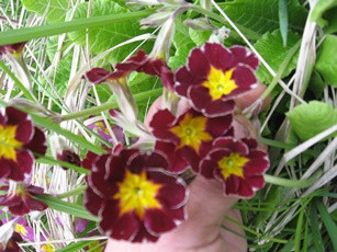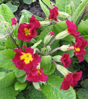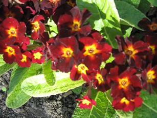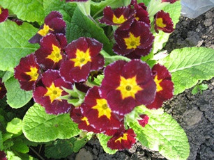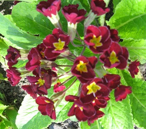 По расцветке похожа на примулу Юлии. Тёмно-бордовый основной цвет с бархатной структурой занимает практически всё пространство лепестка. В центре присутствует маленькое ярко-жёлтое округлое пятно, придающее соцветию необычное красное сияние на тёмном фоне. Диаметр 2,5 см. В холодное время года (начало весны, осень) лист темнеет, меняя окраску на бордово-зелёную. Потрясающее зрелище!