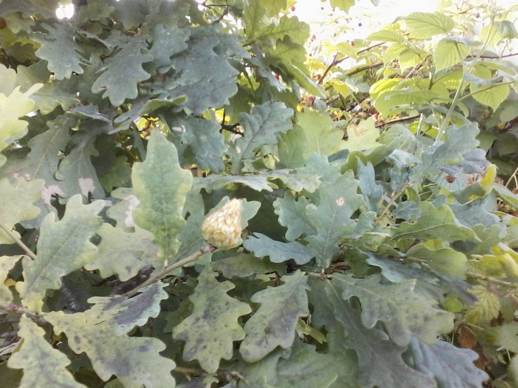 Еще можно отметить Орехотворку Яблоковидную , нет она не образовывает шишечек на дубе но её личинки образовывают круглые шаровидные наросты в больших количествах, их еще называют «чернильные орешки», которые порой как виноградная гроздь свисают на листьях.