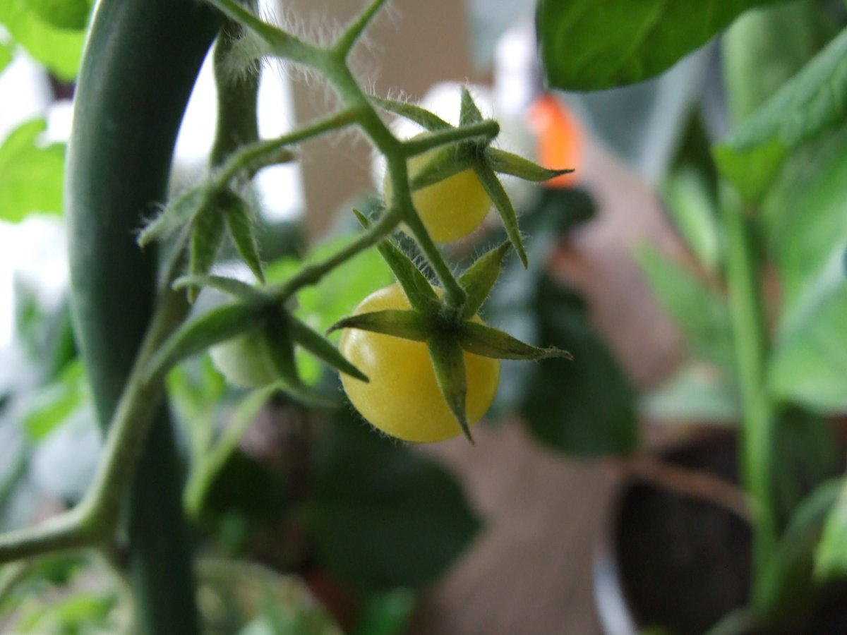 За зиму растения несколько вытянулись из-за недостатка света, но 20 апреля на них уже красовались желтые томатики!